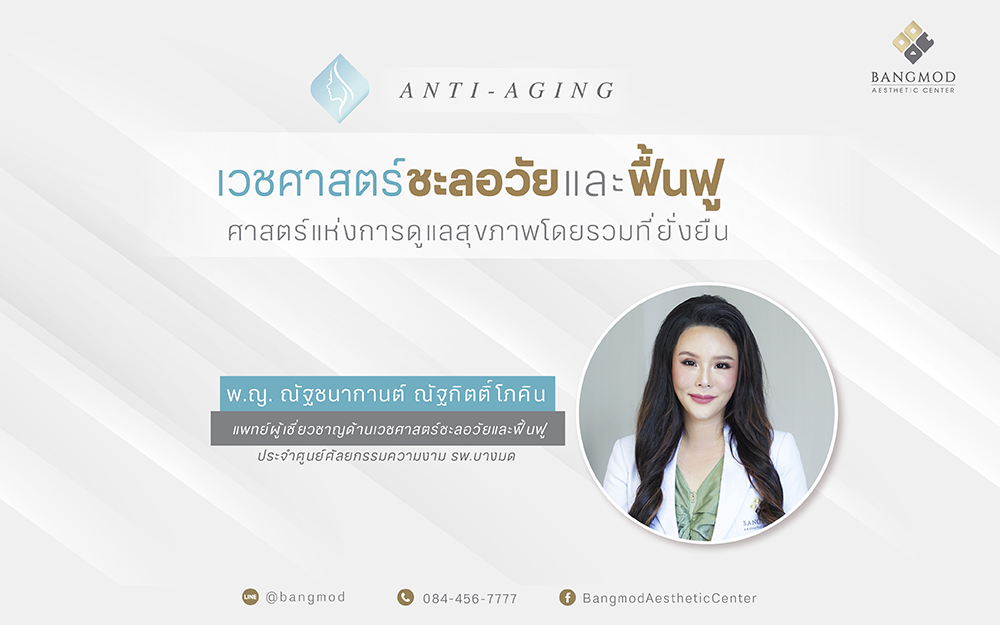 บทความสุขภาพโดย : พญ.ณัฐชนากานต์ ณัฐกิตติ์โภคิน แพทย์ผู้เชี่ยวชาญด้านเวชศาสตร์ชะลอวัยและฟื้นฟู ศูนย์ศัลยกรรมความงามโรงพยาบาล ปรึกษาเรื่องศัลยกรรมความงาม โทร. 0-2867-0606 ต่อ 1200-1204